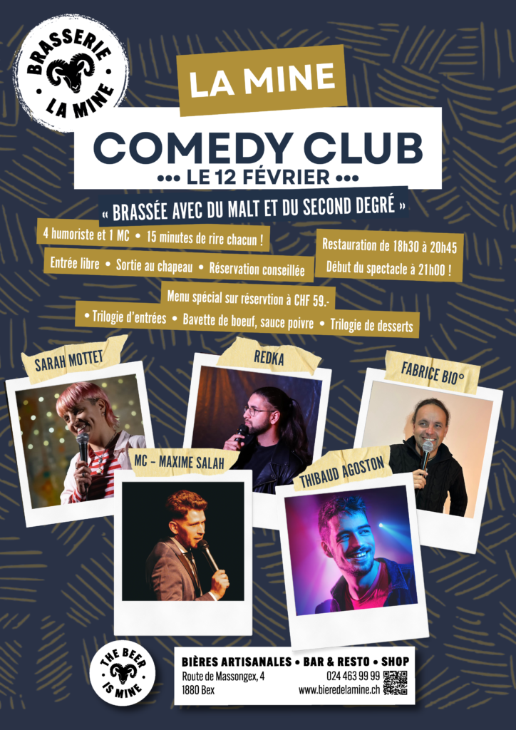 Réservation sur https://my.weezevent.com/stand-up-a-la-mine ou par e-mail à restaurant@bieredelamine.ch